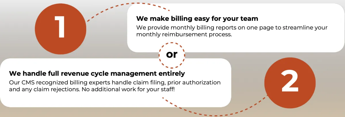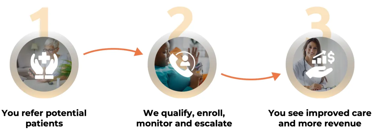 Optional managed services to ensure success without extra staff, including eligibility verification, patient onboarding, patient monitoring, and care escalation.