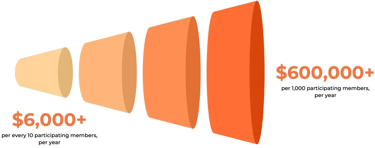 With our technology and our platform, providers can unlock an average of $600 – 1,200 dollars per patient per year – after our Health’s cost is deducted.