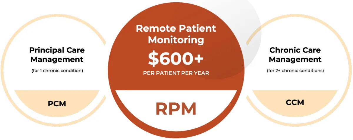 Most providers don’t realize that Remote Patient Monitoring can be combined with Chronic or Principal Care Management (CCM or PCM) to maximize services provided and therefore revenue generated.